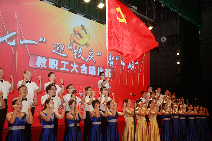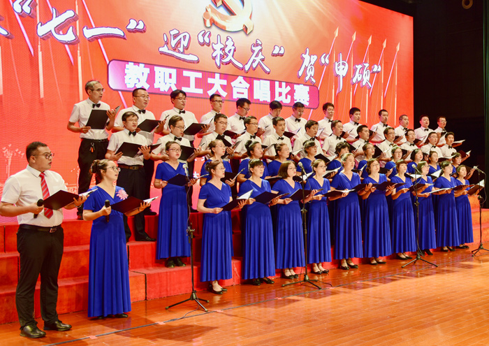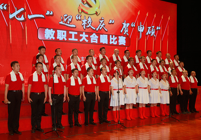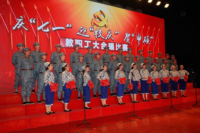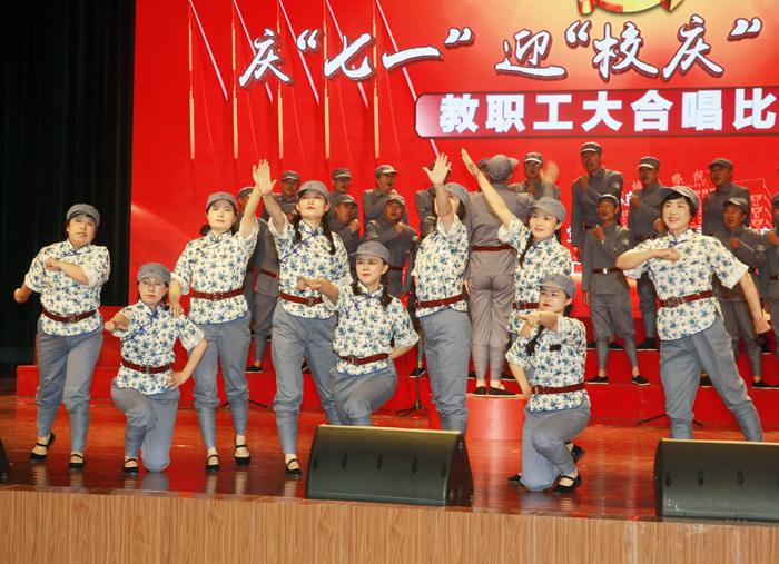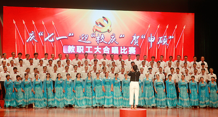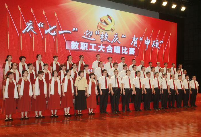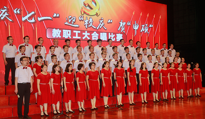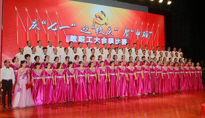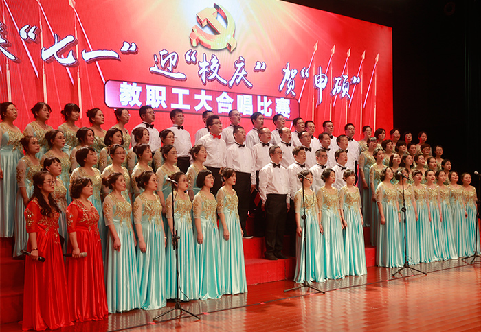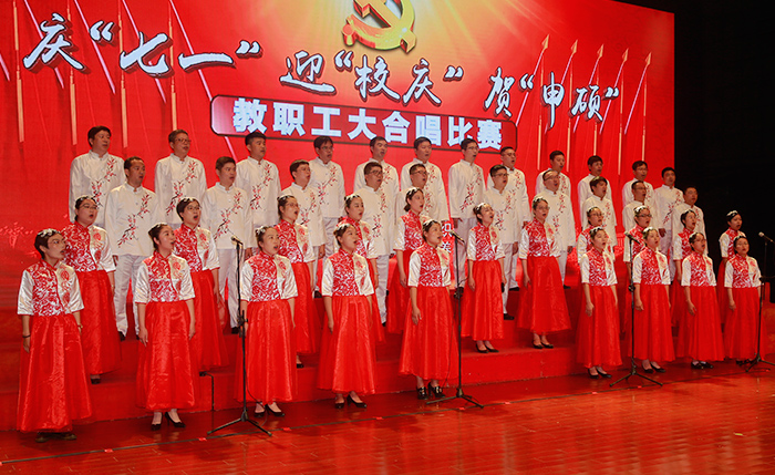 7月1日,是中国共产党建党97周年的纪念日子,学校隆重举办了庆“七一”迎“校庆”贺“申硕”教职工大合唱比赛。全校教职工参加,大家用歌声抒发对伟大祖国和党的深深至爱,倾诉对学校教育事业的拳拳之情。校领导葛世伦、叶美兰、方海林、薛浩、邵荣、陈春雷、宋长春、王路明、王资生观看了比赛。