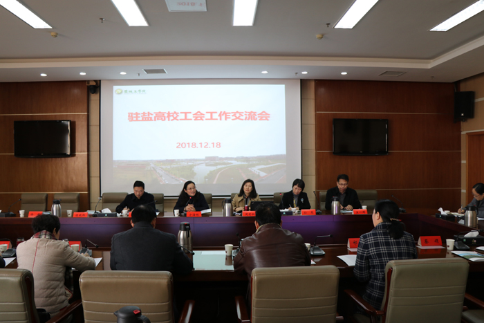 12月18日下午,驻盐高校工会工作交流会在我校南校区行政楼9楼会议室举行。校党委副书记、副校长方海林出席会议并致辞,市总工会副主席周彩枫应邀出席会议并讲话,市总工会基层工作部部长徐广坤及驻盐高校工会负责人参加会议。