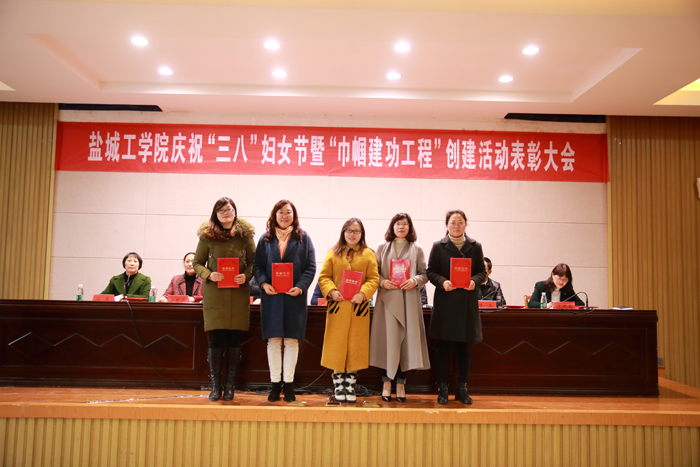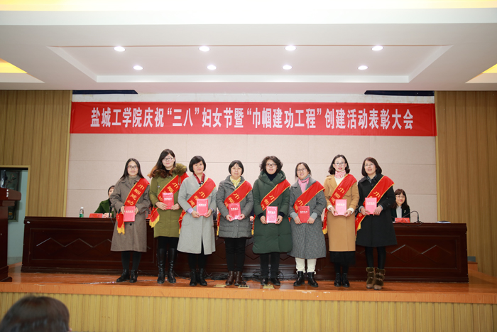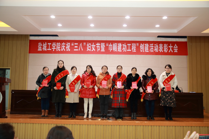 姚部长宣读《盐城工学院关于表彰2017年度“巾帼文明示范岗”、“巾帼建功标兵”的决定》,化学化工学院基础化学课程组等6个集体、于凉云等20名个人被表彰为“巾帼文明示范岗”、“巾帼建功标兵”。严新、李翠敏两位教师分别代表获奖集体和个人作了交流发言。