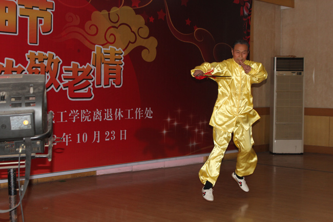 接着,进入联欢会表演阶段,一支支欢乐的舞蹈,舞出了老同志们的多彩人生,一曲曲动听的歌声,唱出了老同志晚年生活的欢乐。尤其是夏斯林的太极剑表演,时而像蛟龙出海,时而又似行云流水,表演得出神入化,令人目不暇接;王效康的舞蹈伦巴和牛仔,更是节凑鲜明,动感强烈,使人忘却了年龄,仿佛又回到了从前,把联谊会的气氛推向了一个又一个高潮。