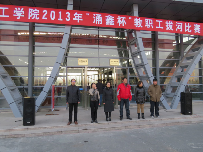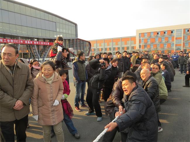 12月21日下午,校工会在希望大道校区风雨操场举行2013年“涌鑫杯”教职工拔河比赛。经过激烈的角逐,后勤服务总公司分会获一等奖;土木学院分会、体育部分会、图书馆分会获二等奖;化生学院分会、机关四分会分会、材料学院分会、机关五分会获三等奖。