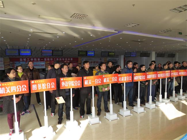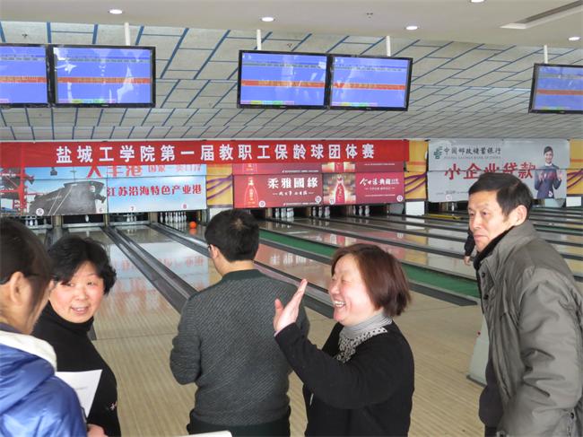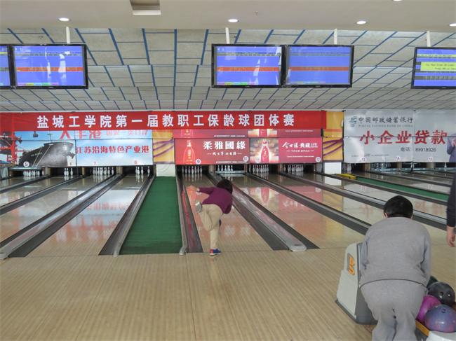 3月15日上午,校工会在盐城市保龄球馆(盐城市解放南路102号全民健身中心二楼)举行第一届教职工保龄球团体赛。经过激烈的角逐,继续教育学院分会获一等奖;机关五分会、社科部分会、设计艺术学院分会获二等奖;机械学院分会、外国语学院分会、机关二分会、机关三分会获三等奖。