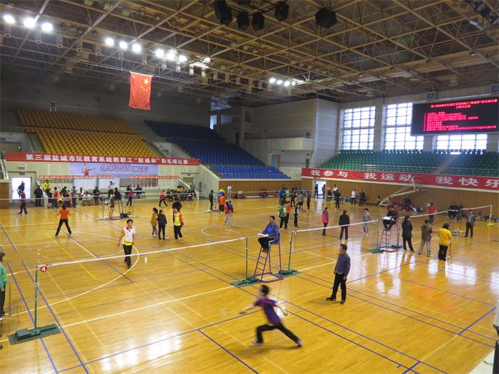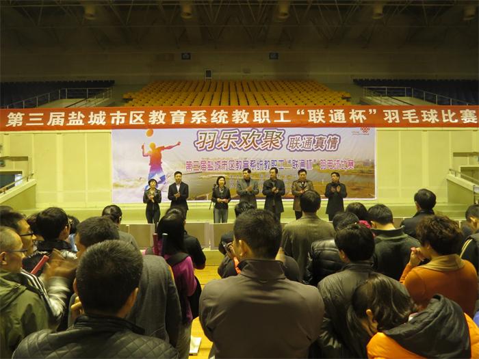 3月29日上午,由我校承办的盐城市区第三届教育系统教职工“联通杯”羽毛球比赛在北校区体育馆举行,驻盐高校、中专校、市直各学校等31个代表队参加了本次比赛。