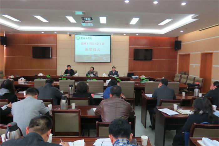 4月14日下午,在南校区行政楼九楼会议室,学校举行2014年度工会工作颁奖大会,为获得2014年度盐城市总工会、市妇联和市教育工会表彰的先进集体和个人举行颁奖仪式。