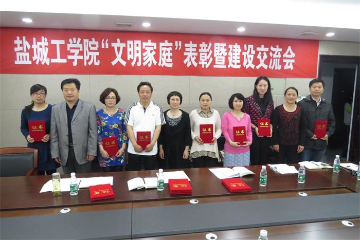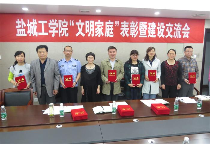会上,孙琴宣读了《关于表彰2014年度盐城工学院“文明家庭”的决定》(盐工工〔2015〕11号文)。孙琴、徐新华、沈长华为我校29户受表彰的“文明家庭”代表颁奖。