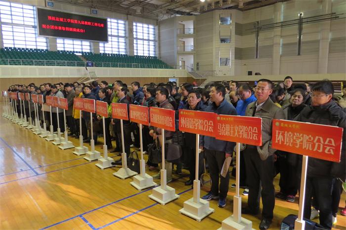 11月28日,学校第九届教职工羽毛球混合团体赛开幕式在建军东路校区体育馆举行。校党委副书记胡凤娥宣布第九届教职工羽毛球混合团体赛开幕。校工会主席孙琴致开幕词。化工学院分会李慧、体育部分会宁昌峰分别代表运动员和裁判员宣誓。开幕式由体育教学部党总支书记胡朋林主持。全校25个分工会代表队200多人参加比赛。