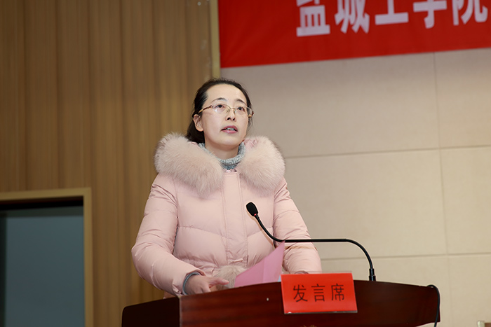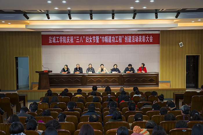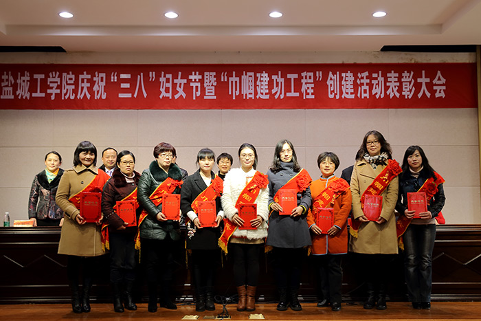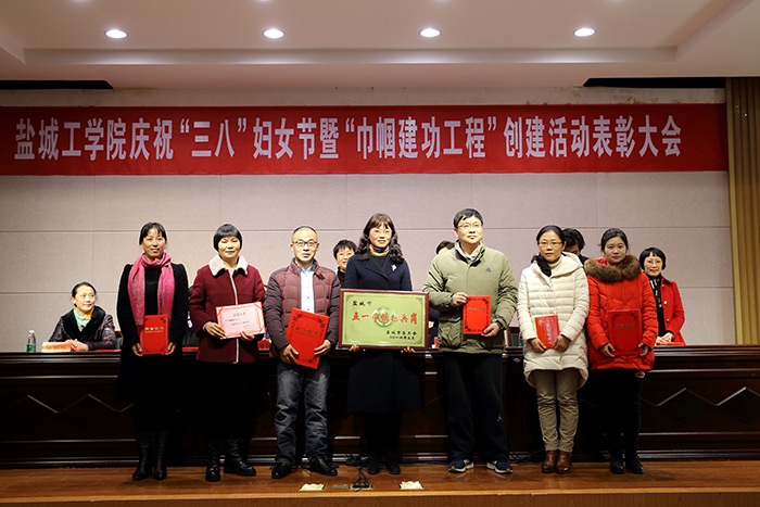 方海林宣读我校2015年获上级工会、妇联等组织表彰的先进集体和个人名单。党委组织部部长宋长春宣读《盐城工学院关于表彰2015年度“巾帼文明示范岗”、“巾帼建功标兵”的决定》。经济学院教务科等5个集体、马骁骏等17名个人分别被表彰为“巾帼文明示范岗”、“巾帼建功标兵”荣誉称号。喻淑兰及吕慧华两位教师分别代表获奖集体和个人发言。