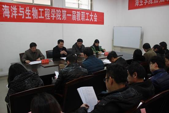 12月7日下午,海生学院在北区教育超市四楼会议室召开了“海洋与生物工程学院第一届教职工大会”。大会由海生学院全体教职工参加。校工会副主席沈长华同志出席,并宣读校工会的《关于同意召开海洋与生物工程学院第一届教职工大会的批复》。