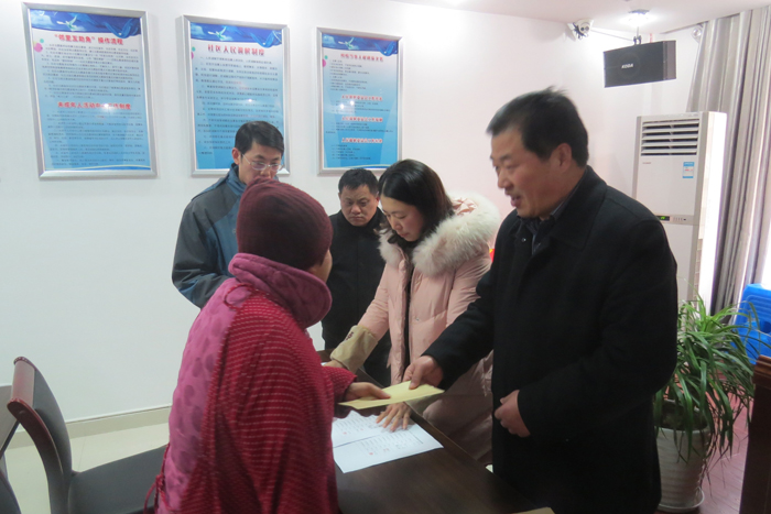 工会副主席沈长华为新洋社区特困群众发放慰问金