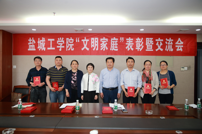 会上,徐新华宣读了《关于表彰2016年度盐城工学院“文明家庭”的决定》(盐工工〔2017〕12号)。孙琴、徐新华、沈长华为我校30户受表彰的“文明家庭”代表颁奖。