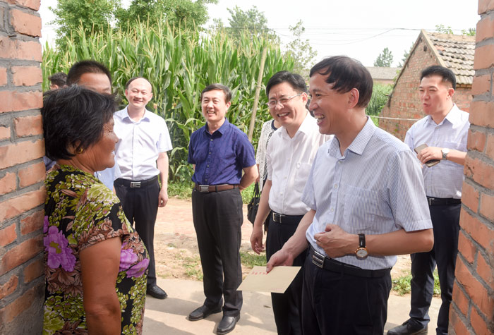 葛世伦一行首先来到学校挂钩帮扶的小尖镇朱浦村实地走访,慰问困难户,鼓励困难群众艰苦奋斗,增强脱贫信心。学校为村委会添置了空调、办公桌椅、电脑等办公物品。