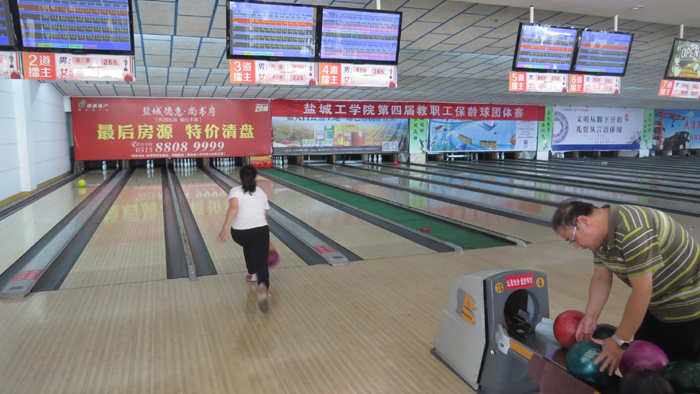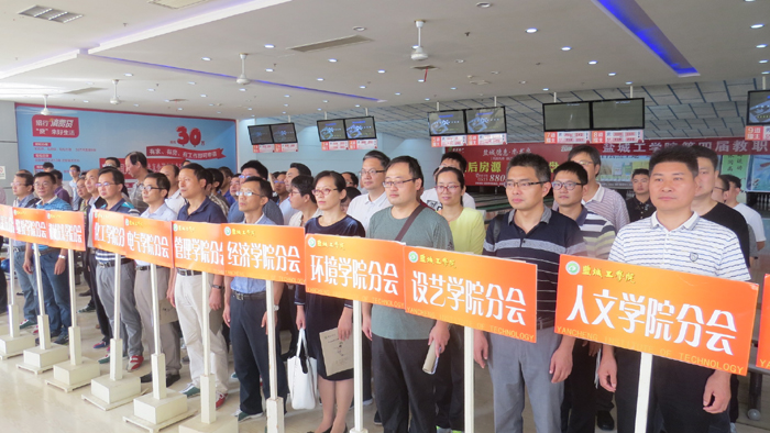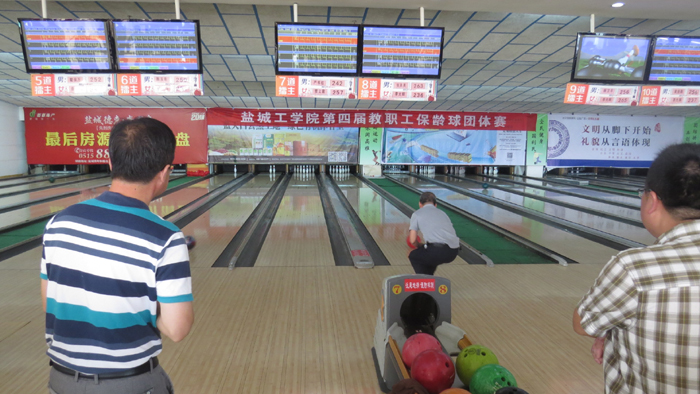 9月24日上午,我校第四届教职工保龄球团体赛在盐城市保龄球馆举行。工会主席孙琴致开幕词,盐城市保龄球协会副会长王锦辉宣读保龄球竞赛规程,体育教学部党总支书记胡朋林宣布校第四届教职工保龄球团体赛开幕。工会副主席沈长华主持开幕式,全校26个分工会代表队110余人参赛。