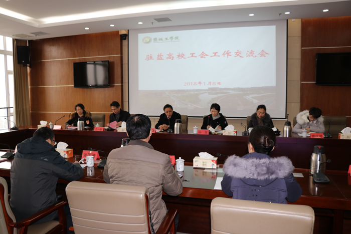 1月8日下午,驻盐高校工会工作交流会议在学校南校区行政楼930会议室召开。校党委副书记薛浩出席会议并讲话。盐城工学院、盐城师范学院、江苏盐城医药职业技术学院、盐城工业职业技术学院、江苏盐城技师学院、盐城生物工程高等职业技术学院等6家驻盐高校的工会负责同志参加会议。