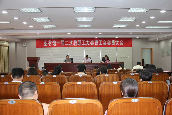 6月27日,在南校区图书馆学术报告厅,图书馆召开一届二次教职工大会暨工会会员大会。图书馆馆长吴登国作《图书馆工作报告》,大会讨论并通过了《图书馆第四轮岗位聘任实施方案(草案)》,图书馆党总支书记高琴主持大会并讲话,图书馆党政班子成员及全体教职工参加会议。