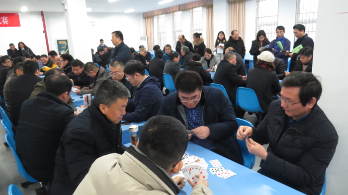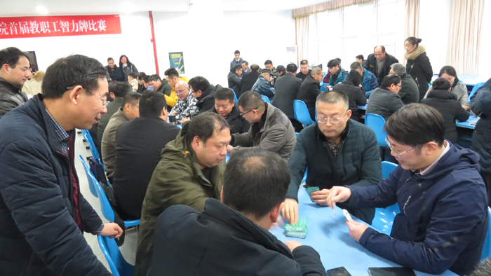 12月29日,我校首届教职工智力牌比赛在学校南校区师生活动中心举行。工会主席孙琴致开幕词。体育教学部党总支书记秦明胜宣读比赛规则。全校26个分工会代表队200多人参加比赛。