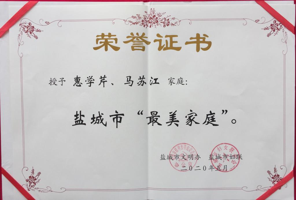 日前,盐城市精神文明建设委员会办公室、盐城市妇联联合发文《关于表彰第五届盐城市最美家庭的决定》(盐文明办[2020]11号文),在全市范围内表彰一批崇德向善、事迹感人、业绩突出、影响广泛的文明家庭和最美家庭,我校机械优集学院惠学芹老师家庭荣获盐城市“最美家庭”称号,全市有80户家庭获此表彰。