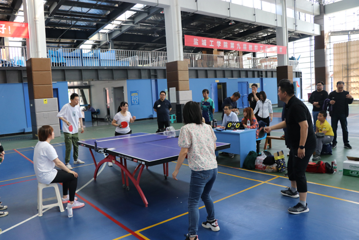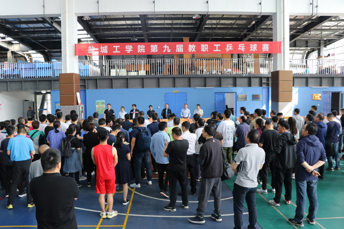 5月29日,我校第九届教职工乒乓球赛在学校南校区风雨操场举行。校党委副书记薛浩,校党委常委、副校长邵荣、宋长春参加活动。薛浩宣布比赛开幕,校工会主席谢毅敏致开幕词,体育教学部党总支书记秦明胜主持开幕式,体育部张晓东主任宣读比赛规则,土木学院分会姚金涛老师、体育部陈雯雯老师分别代表运动员和裁判员宣誓。全校26个分工会代表队200多人参加比赛。