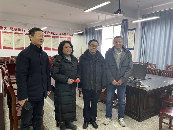 在壬寅年新春佳节即将来临之际,校党委副书记薛浩在校工会主席谢毅敏的陪同下,1月15日下午到数理学院慰问了不幸罹患重病且生活困难的客籍知识分子、壮族女教师卢博士,数理学院院长薛长峰、副院长兼分工会主席徐宁参加慰问。薛浩与卢老师亲切交谈,充分肯定了她2018年8月复旦大学博士后出站来校任教后取得的主持两项国家自然科学基金、在物理学顶级期刊PRL和材料学顶级期刊NANO LETTER上发表两篇SCI论文的优异成绩,仔细询问了她的身体状况、医疗情况和家庭情况,叮嘱她一定要坚定信心,保持乐观的心态,积极配合治疗,坚持适当锻炼,在保重好身体的前提下做好教学和科研工作。