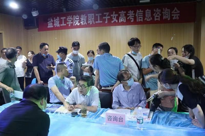 会上,王益群首先简要介绍了2022年全国、江苏省高考总体概况,对我校本科高校第一批次文科、理科和艺术类高考、中外合作办学进行了宣传,接着进行现场交流咨询。王益群、杨汉华、谢毅敏等专家结合自身多年特别是近两年在招生宣传过程中对招生政策的精准把握和指导报考经验,与前来咨询的教职工及其子女进行交流,对其高考成绩分数段分布、高考志愿的填报规则进行了针对性的分析和指导,并就报考学校及专业选择提出了参考建议。