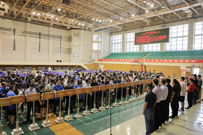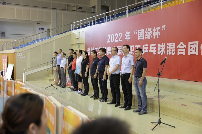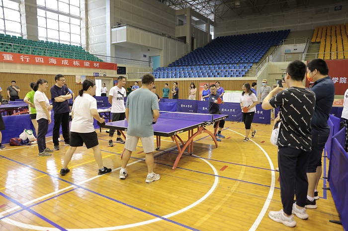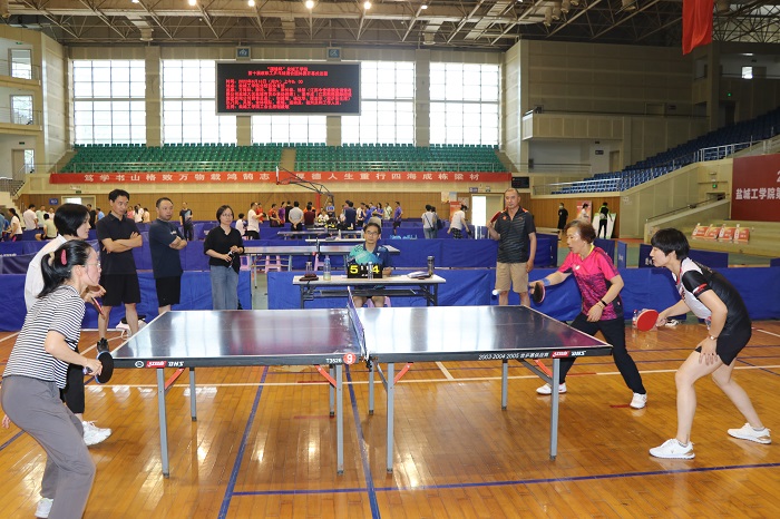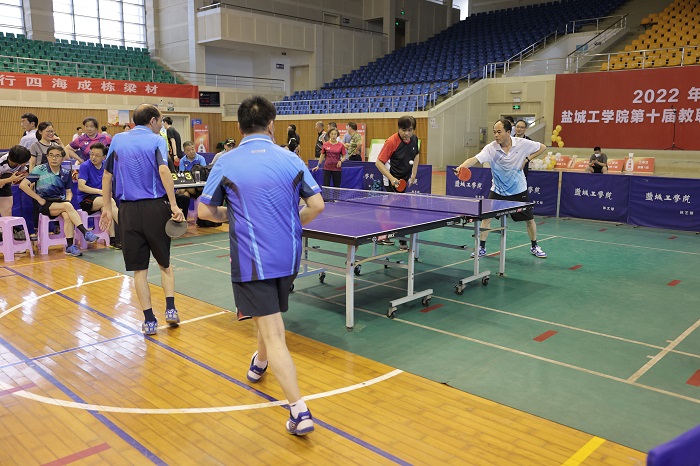 为丰富教职工业余文化生活,激发教职工积极参与体育锻炼的热情,6月19日,我校在北校区体育馆举办了“国缘杯”第十届教职工乒乓球混合团体赛。校长、党委副书记方海林,党委副书记薛浩,党委常委、副校长邵荣,党委常委、副校长宋长春,工会主席谢毅敏、副主席吴旭,体育学院党总支书记杨汉华、副院长仇乃民,校乒协主席、继教学院院长、党总支书记陈志华,江苏今世缘酒业销售有限公司盐城大区盐城市区办事处经理徐朋、副经理王冲,江苏熙熙国际控股集团有限公司销售总监梁中成等出席开幕式。谢毅敏主持开幕式,薛浩代表组委会致开幕词,徐朋代表赞助方致辞,杨汉华宣读《“国缘杯”盐城工学院第十届教职工乒乓球赛竞赛规程》,土木学院分会姚金涛代表运动员宣誓,体育学院张博代表裁判员宣誓,方海林宣布比赛开始。