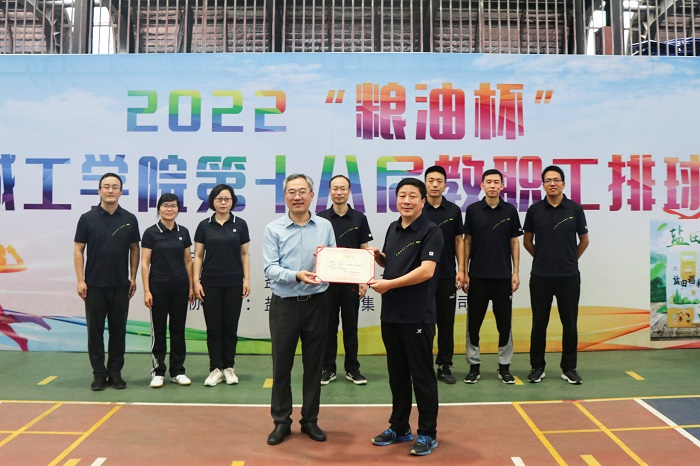 9月25日,为丰富教职工业余生活,激发教职工强身健体,增强教职工团队意识,庆祝学校第四次党代会圆满成功,并以昂扬向上的精神风貌迎接党的二十大胜利召开,我校在希望大道校区风雨操场举办“粮油杯”第十八届教职工排球赛。校党委副书记薛浩宣布比赛开幕,校工会主席谢毅敏代表组委会讲话,盐城市粮油集团有限公司工会主席许向军代表赞助方致辞,体育学院副院长仇乃民宣读《盐城工学院第十八届教职工排球赛竞赛规程》,马克思主义学院蔡云晨、体育学院张博分别代表运动员和裁判员宣誓,体育学院党总支书记杨汉华主持开幕式,全校27个分工会代表队200多人参加比赛。
