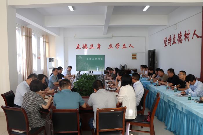 9月3日下午,校工会在南校区学生处二楼会议室召开9月份分工会主席会议,校工会主席徐新华主持会议,校工会副主席崔振虎、工会办公室负责人和全校27个分工会主席参加会议。