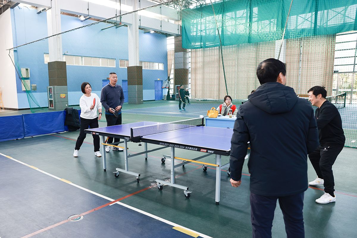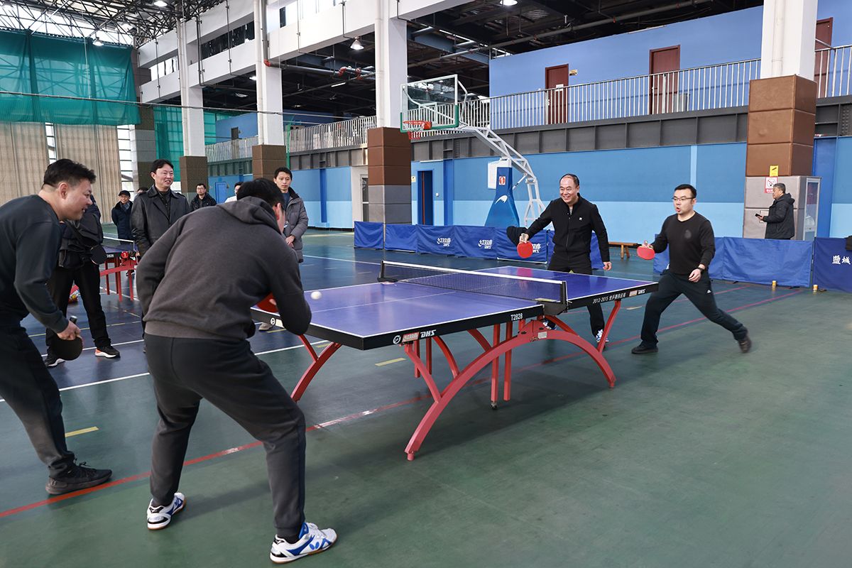 邵荣致辞并宣布比赛开幕。他指出,在2025年元旦举行教职工乒乓球赛,对于激励全校教职工重视体育锻炼,以良好的身体素质推进学校高质量发展具有重要意义。他鼓励全体参赛教职工在比赛中发扬团结协作、顽强拼搏的精神,赛出风格、赛出水平。王冲代表赞助商致辞,介绍了国缘酒业概况,向参赛教职工表示美好祝愿。仇乃民宣读竞赛规则,说明执行乒乓球比赛最新规则。土木学院姚金涛、体育学院陈雯雯分别代表运动员、裁判员庄严宣誓,承诺将在比赛中秉持公正、公平、公开的原则,尊重对手、尊重裁判,遵守比赛规则,展现良好的体育精神。