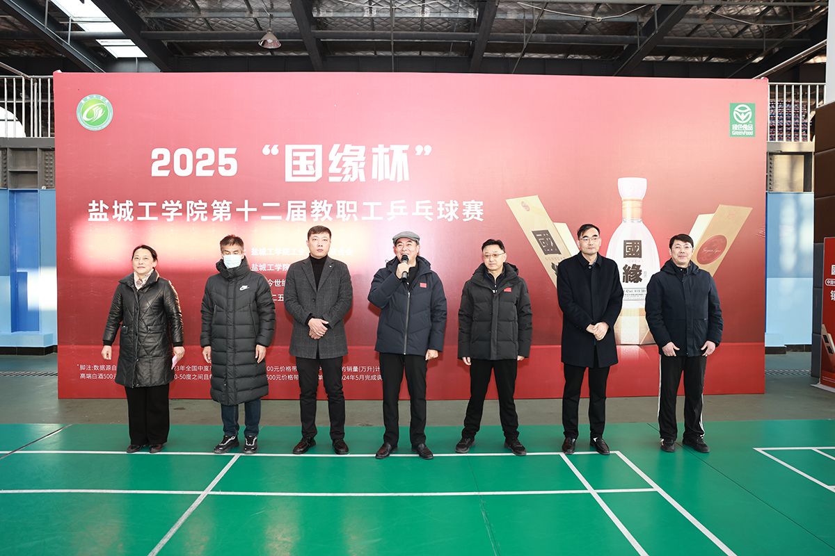 1月1日,“国缘杯”盐城工学院第十二届教职工乒乓球赛在希望大道校区风雨操场隆重开幕。此次比赛吸引了众多教职工参与,校长、党委副书记邵荣,党委副书记薛浩,江苏今世缘酒业股份有限公司盐城市区国缘V系推广处经理王冲,工会主席、妇联主席徐新华,体育学院院长仇乃民,校乒乓球协会会长、继续教育学院院长、盐城开放大学校长陈志华等出席开幕式,全体领队、教练、运动员、裁判员和工作人员等200多人参加。徐新华主持开幕式。