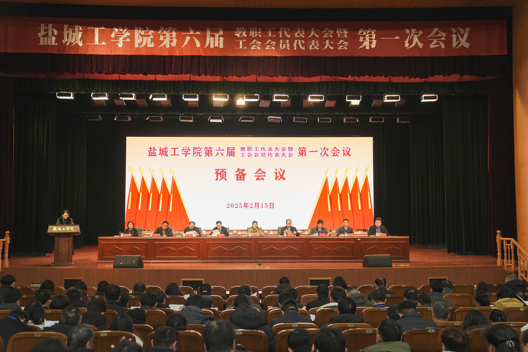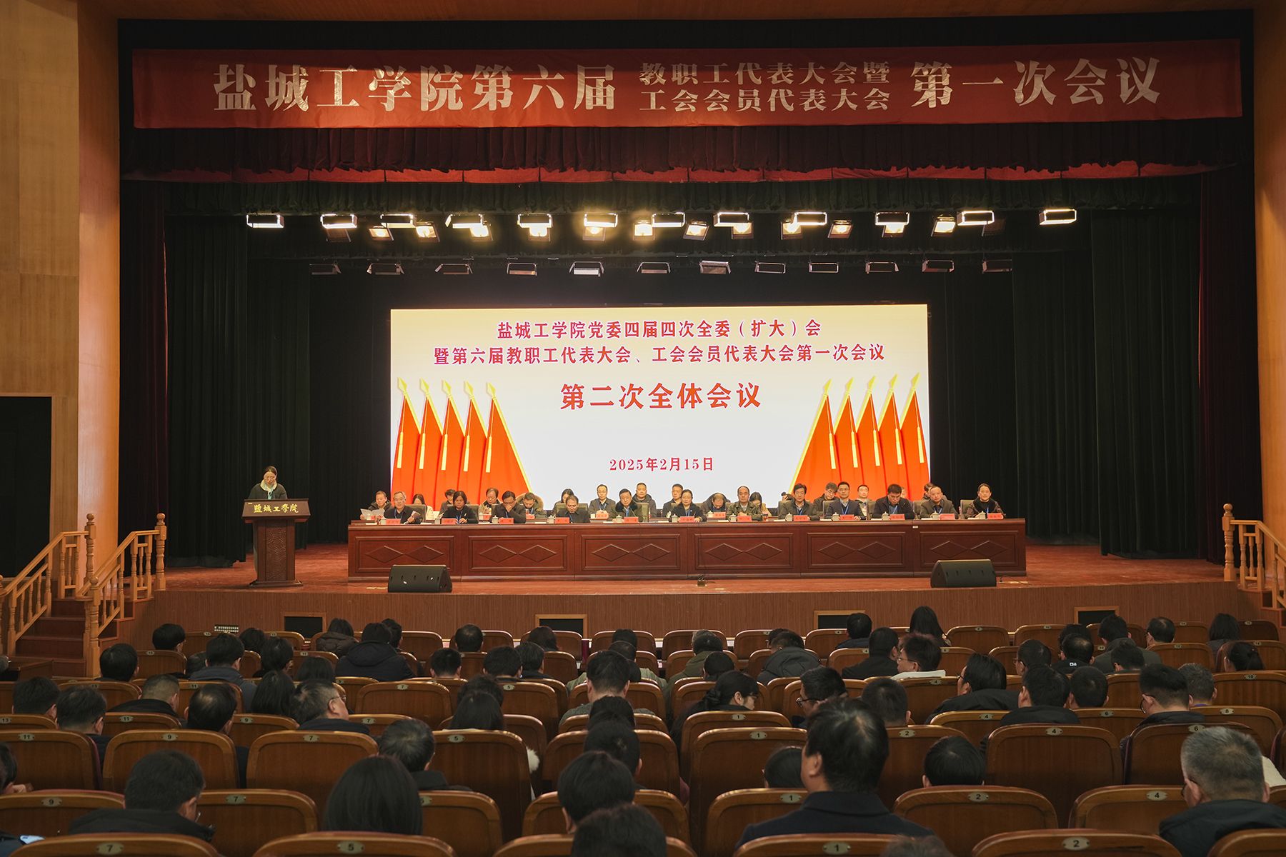 2月15日,学校在希望大道校区行政楼报告厅召开党委四届四次全委(扩大)会暨第六届教职工代表大会、工会会员代表大会第一次会议。校党委书记方海林,党委副书记、校长邵荣,盐城市总工会副主席周小进,盐城市教育局四级调研员、教育工会常务主任吴恒广,校党委副书记薛浩,党委常委、副校长王资生,副校长、盐城市政席副主席丁成,党委常委、副校长王伟,党委常委、纪委书记、省监委派驻盐城工学院监察专员陈伟,党委常委、副校长张勤芳,党委常委、副校长、组织部部长邢晓平和驻盐兄弟高校工会主席出席会议。薛浩主持会议。我校党委常委,党委委员、纪委委员,第六届教代会暨工代会代表、列席人员,其他科级以上干部、专业系主任、课程组主任、实验中心主任及科研业务机构内设单位主任以及离退休人员代表等400余人参加会议。