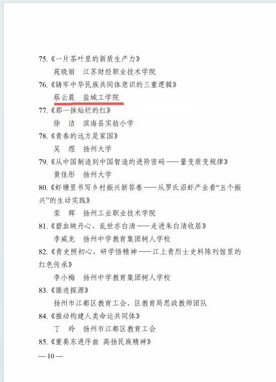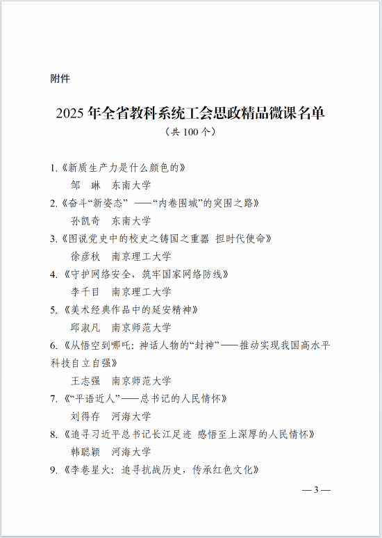 近日,江苏省教育科技工会公布2025年全省教科系统工会思政精品微课征集遴选结果(苏教科2025[55]号),我校马克思主义学院蔡云晨老师的微课作品《铸牢中华民族共同体意识的三重逻辑》成功入选。