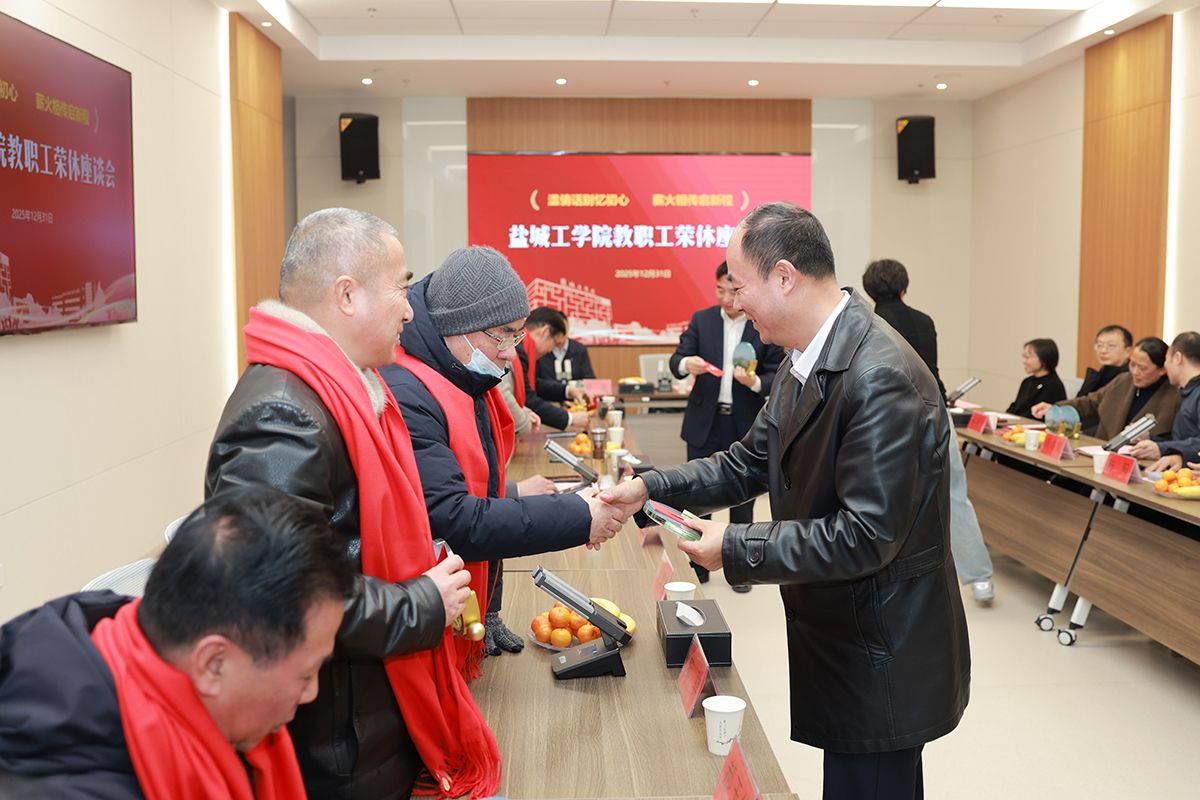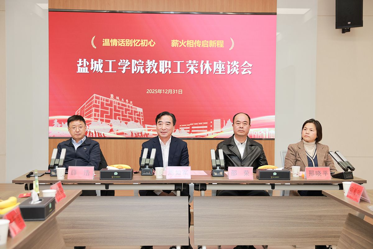 12月31日下午,学校在产教融合大楼一楼会议室召开2025年度荣休教职工座谈会,校党委书记周如军,党委副书记、校长邵荣出席并讲话,党委副书记薛浩主持,党委常委、副校长邢晓平宣读2025年度学校荣休教职工名单。党委常委、组织部部长包雅玮,工会、人事处、离退休处等部门主要负责人,2025年度荣休教职工代表及所在部门负责人参加。