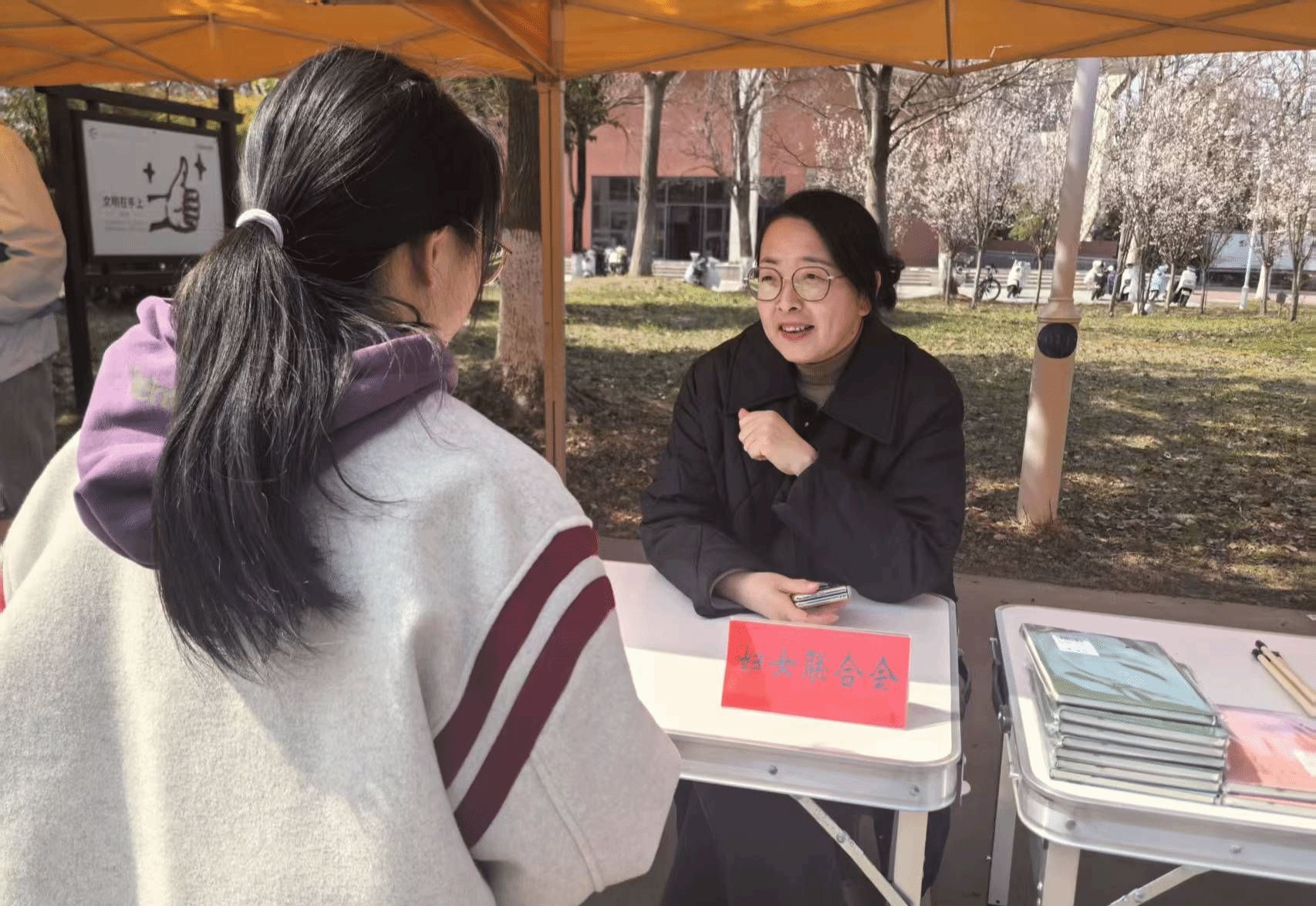 开幕式现场春意盎然,近30项心理健康教育活动在师生眼前铺陈开来,将现场装点得生机勃勃。学生们纷纷踊跃参与,在各个展区之间穿梭体验。活动紧扣“五育润心”主线,将德育、智育、体育、美育、劳育与心理健康教育有机融合,让学生在轻松愉悦的氛围中潜移默化地接受心理健康教育。其中,守护绿植项目以生命教育为切入点,落实“以劳健心”要求,展位前围满了跃跃欲试的学生,大家在悉心照料绿植的过程中感悟生命的力量与奇迹,学会珍惜与尊重生命;书写疗愈等项目借助艺术形式,践行“以美润心”理念,学生们提笔凝神,在光影与笔墨间释放压力、舒缓情绪,实现心灵的净化与升华;拼豆创作则将色彩搭配与创意手工相结合,让学生在专注拼贴的过程中舒缓焦虑、表达内心,于细微处体验创造的乐趣与成就感;撕标签活动则鼓励学生深刻认识自身的独特与价值,增强自我认同感与自信心,促进个性发展与自我实现。校妇女联合会也设置了咨询服务台,为现场师生提供心理支持与关怀指导,成为活动中一抹温暖的亮色。
