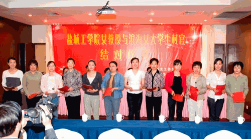 为了深入学习实践科学发展观,充分发挥高校人才资源优势,大力实施“巾帼建功工程”,积极履行高校的社会职能,实现省委“学习实践科学发展观,服务地方作贡献”的目标要求,最近盐城工学院女职工委员会与滨海县妇女联合会共同会商,决定开展“盐城工学院女教授与滨海县女大学生村官结对帮带”活动,由盐城工学院女教授为滨海县女大学生村官提供技术、信息、管理以及个人发展等方面一对一的服务和帮助,着力提升女大学生村官的创新、创业能力和履行岗位职责的本领。促进女大学生村官成长、成才,加快新农村建设步伐,经过认真筹备,盐城工学院女教授与滨海县女大学生村官结对帮带签约仪式5月13日下午在滨海县天海元宾馆隆重举行。签约仪式由葛育富主持,盐城市妇联主席杨爱华、校党委副书记刘必清、工会主席朱友岗、工会副主席、女工委主任沈亚轩,教授朱龙英、沈友娣、施鲁莎等13名女教授、副教授,滨海县委常委、组织部长田为友、组织部副部长葛育富以及滨海县妇联主席张红、部分女企业家以及55名到村任职的大学生村官出席了签约仪式。田为友、杨爱华、刘必清分别致词。田为友在致词中希望女大学生村官们珍惜机会,努力学习;勤学善问,学以致用;扎根基层,创新创业。杨爱华表示各级妇联组织将积极配合对女大学生村官的管理和培养,支持她们的工作,促进她们的成长,关爱她们的生活。刘必清要求我校女教授们从讲政治的高度认真踏实做好服务工作,把服务工作放在心头上,记在脑海中,带着感情,带着责任,主动积极帮助女大学生村官排忧解难,释疑解惑,努力开拓思路,在结对帮扶活动中做实事,出实招,见实效。
